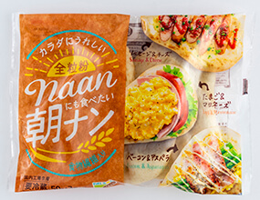 日経POSデータ11年連続NO.1でロングセラー商品である「手のばしナン」に全粒粉を配合したもちもち食感の香ばしいナンです。ミニサイズにしたことで朝食シーンでパンの代わりとしても楽しめます。食物繊維入りのため朝食シーンで活用することでカレーだけではく幅広い食べ方の選択肢が広がります。