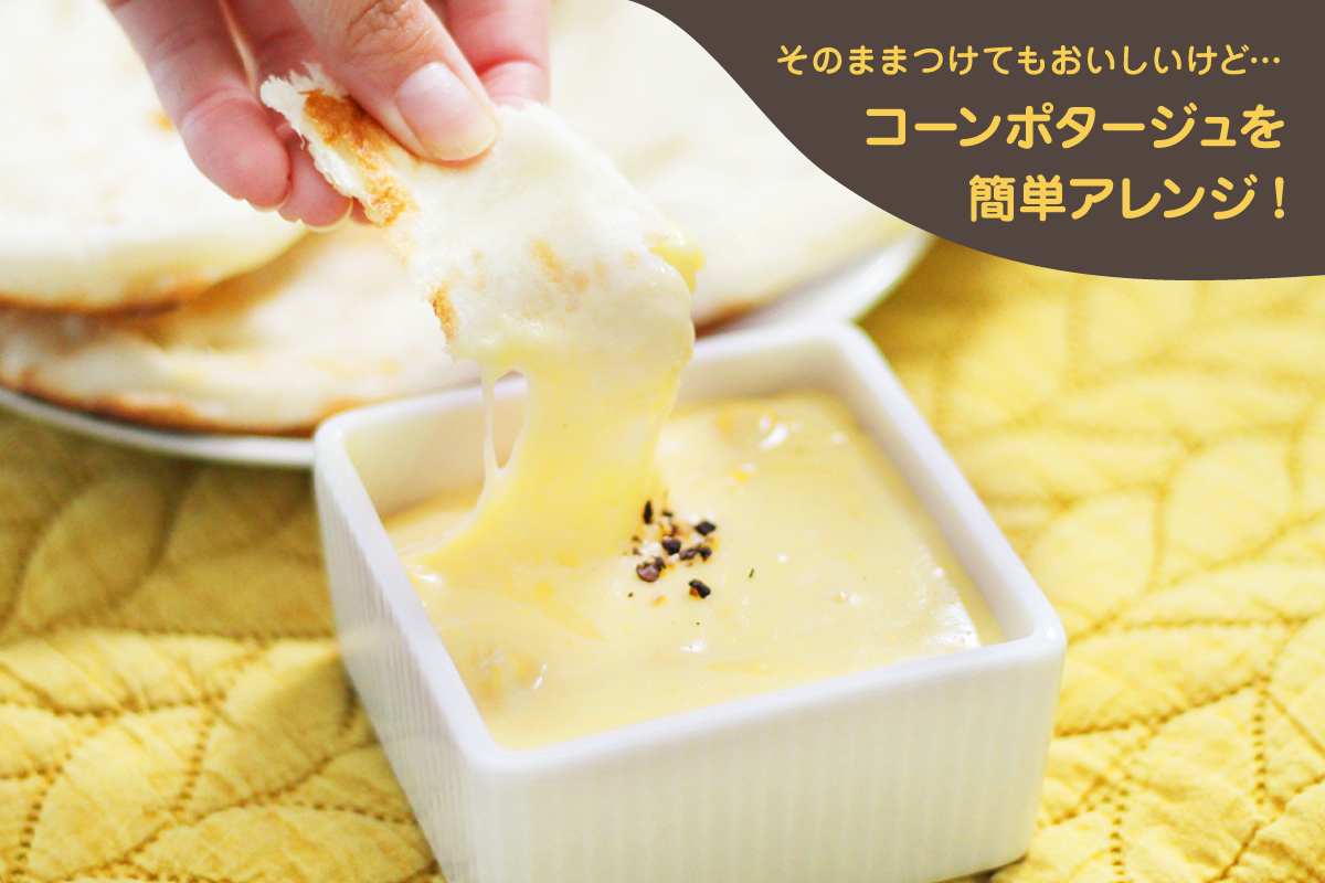 手軽でおいしい即席スープの中でも、特に人気の「コーンスープ」。お湯を注いでそのままナンを付けてもおいしいですが、ちょっと一手間加えれば濃厚でおいしいディップができます。